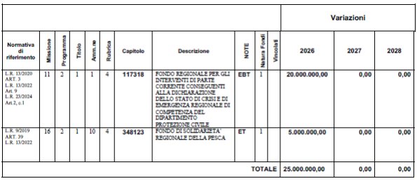 1. Al fine di far fronte ai danni causati dagli eventi meteo avversi dei giorni 19, 20 e 21 gennaio 2026 le autorizzazioni di spesa di cui alla tabella 1 del comma 2 dell’articolo 59 della